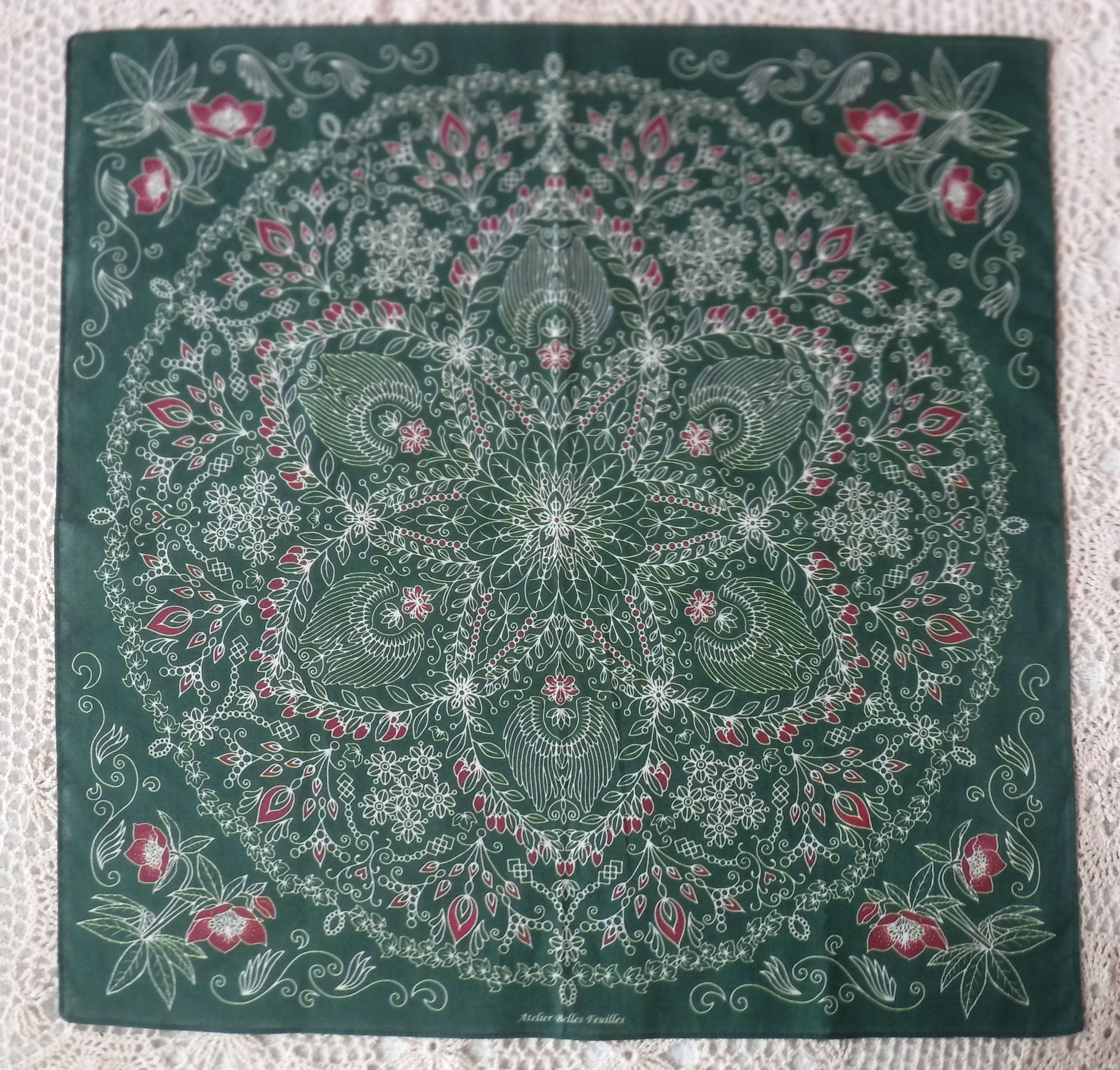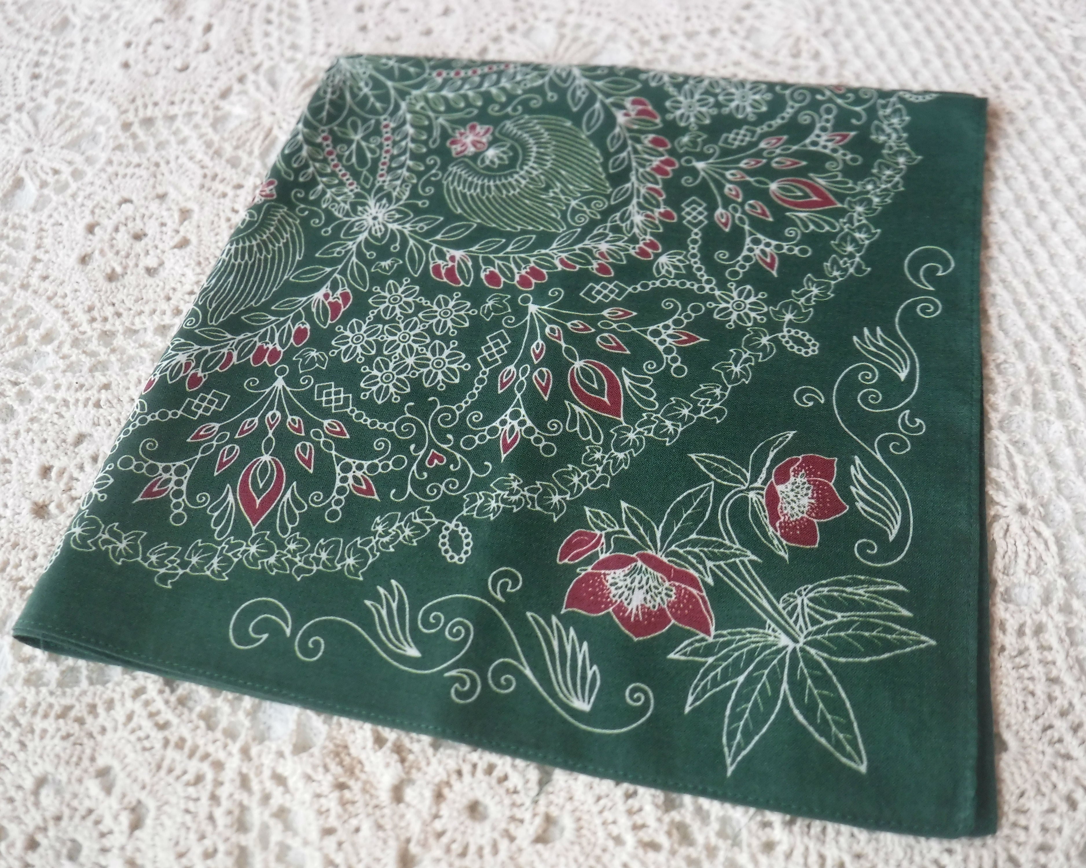 中世ヨーロッパでは悪魔払いとして、ギリシャでは狂人を正気に戻すといわれ、昔のイギリスでは憂鬱や不安を和らげるために使われていました。 ハンカチの四隅に、そのままのかたちで入れています。