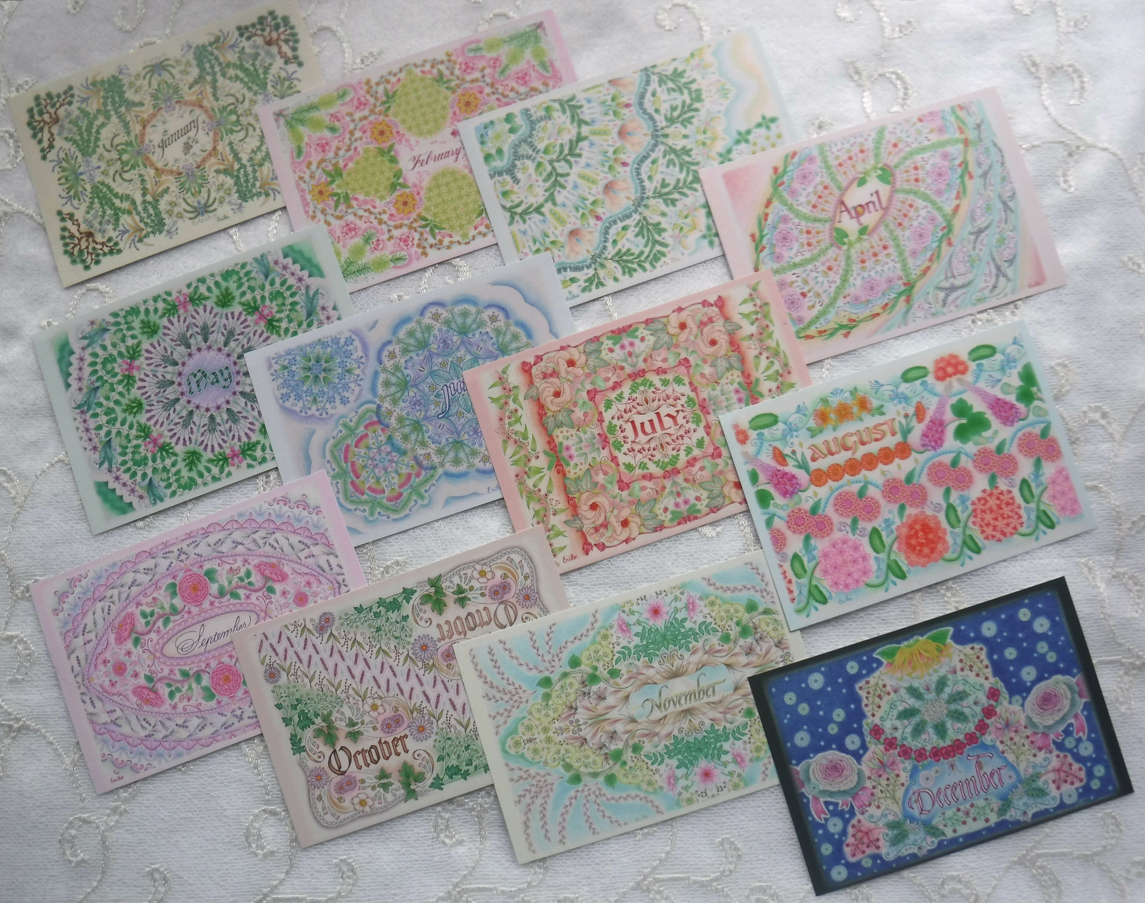 月々のマンダラのポストカードを1枚ずつ、